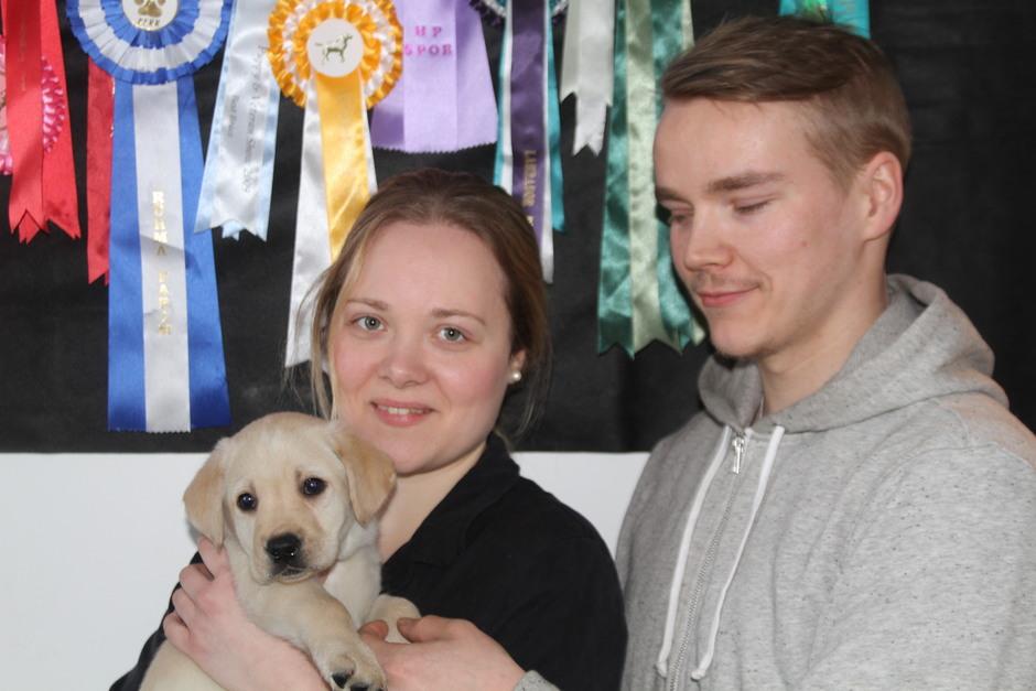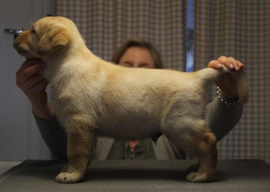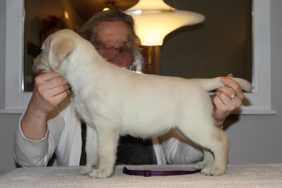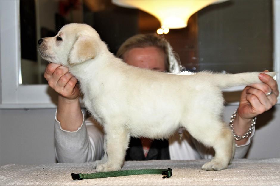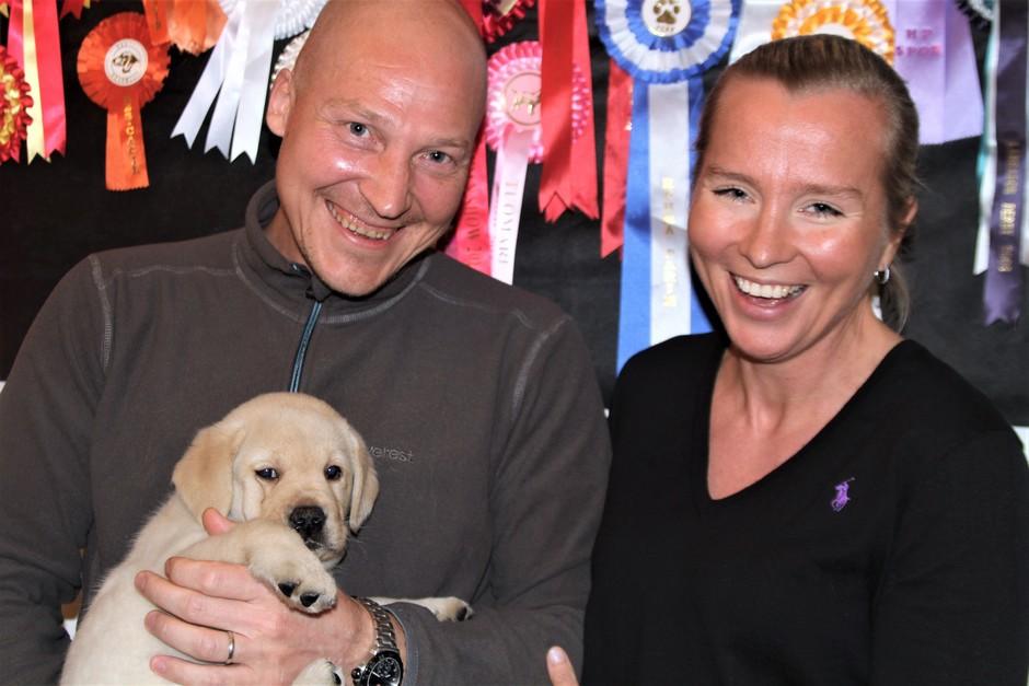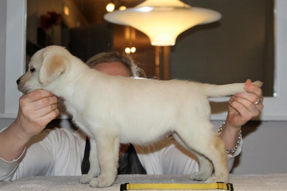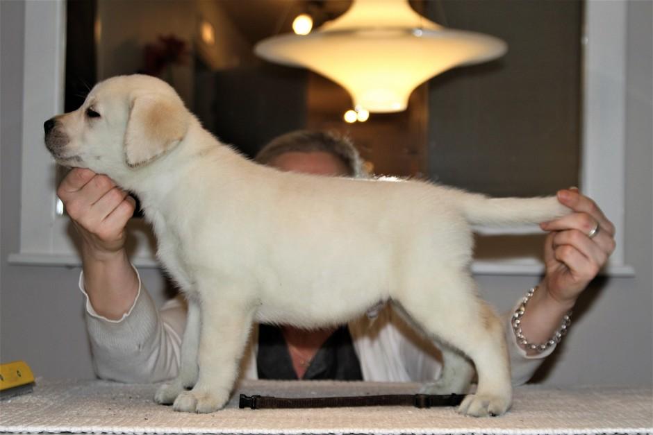 Eddie 10 kk. Labradorien pääerikoisnayttelyssä Hyvinkäällä ison junioriluokan 2. SA, tuomarina Nancy Arbuckle, Hunt Club labradors, USA