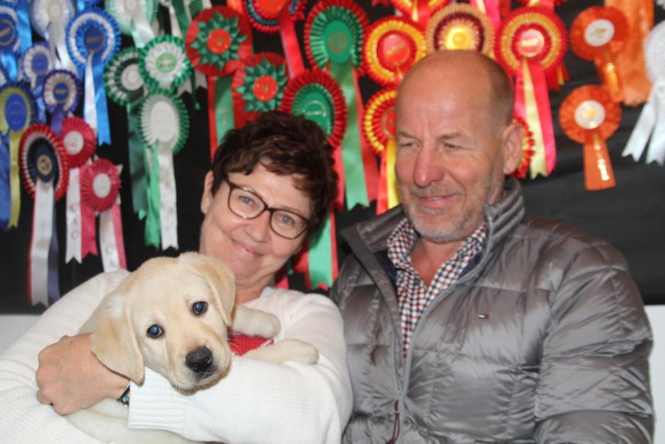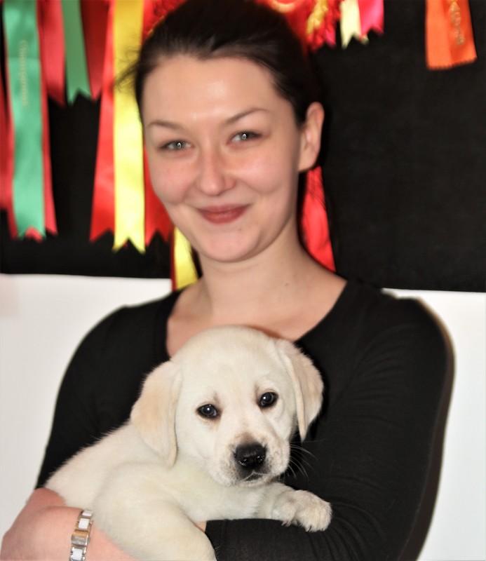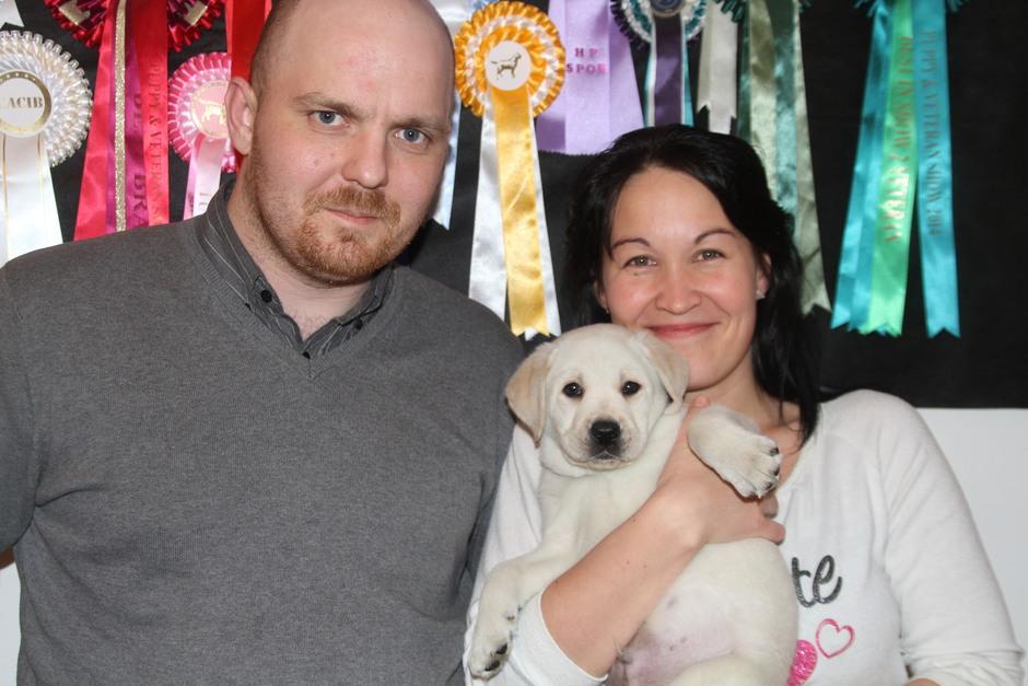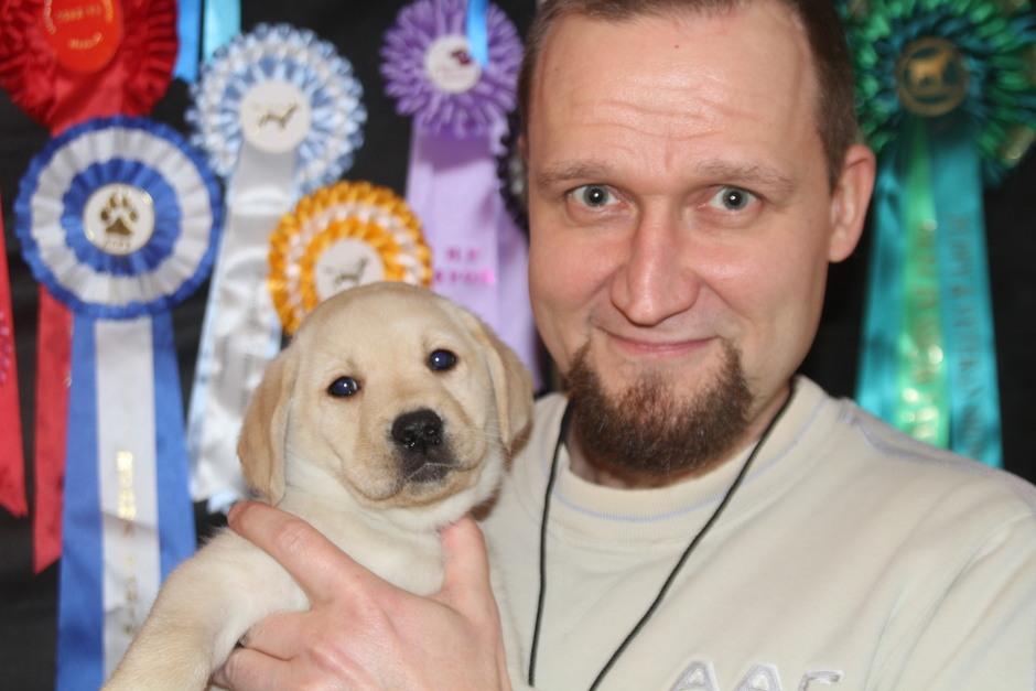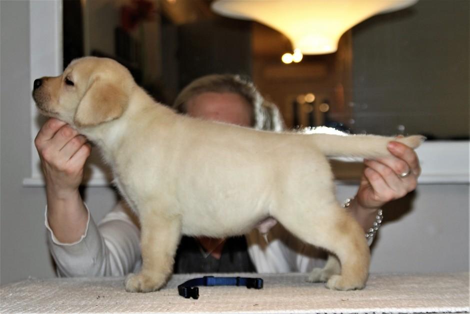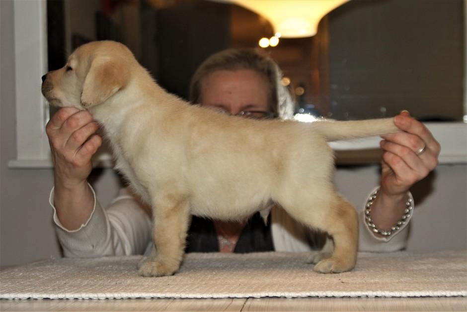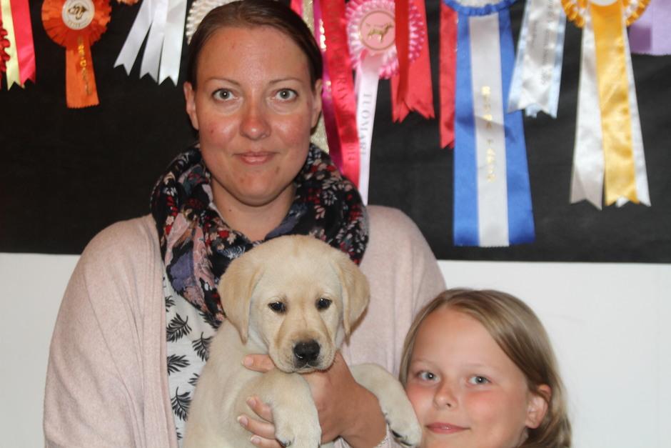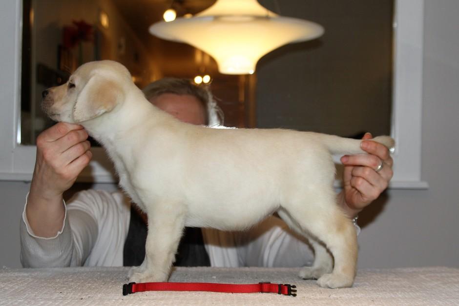 Eddie 10 kk. Labradorien pääerikoisnayttelyssä Hyvinkäällä ison junioriluokan 2. SA, tuomarina Nancy Arbuckle, Hunt Club labradors, USA